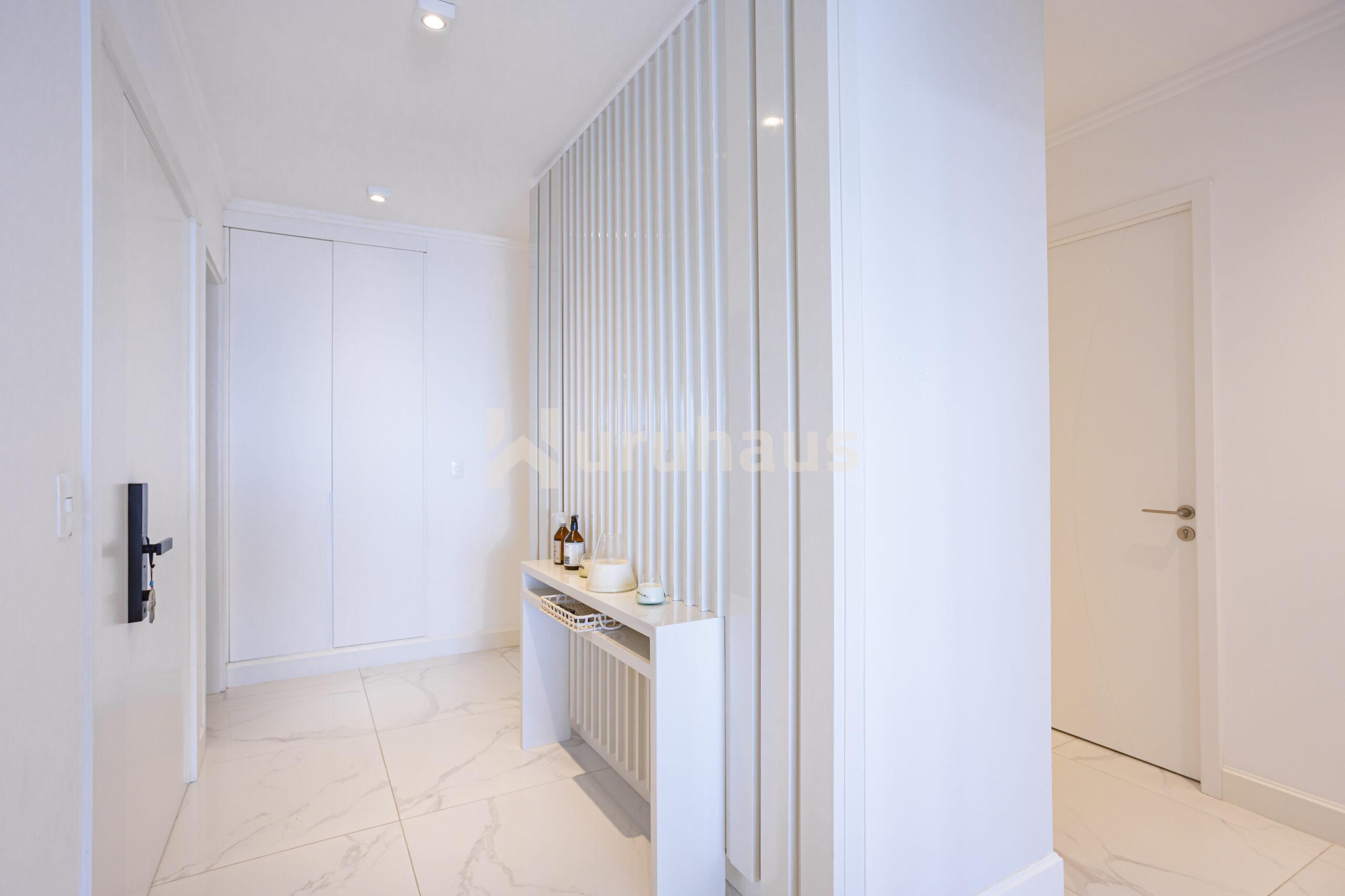 Los apartamentos están totalmente domotizados: cerraduras inteligentes con lector de huella, pin, tac y llave tradicional, control remoto de calefones, luces y cortinas, todo desde el celular o panel central.