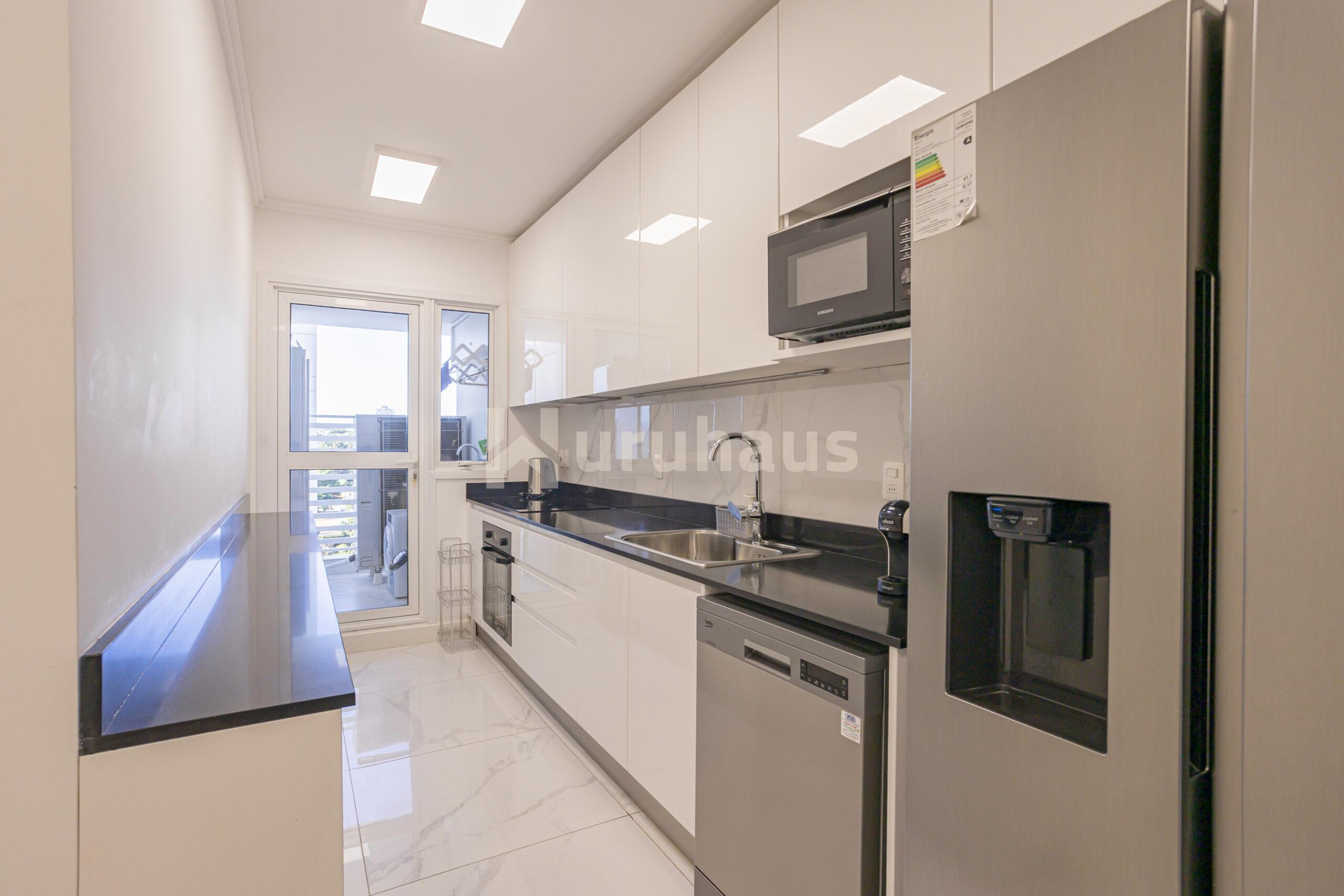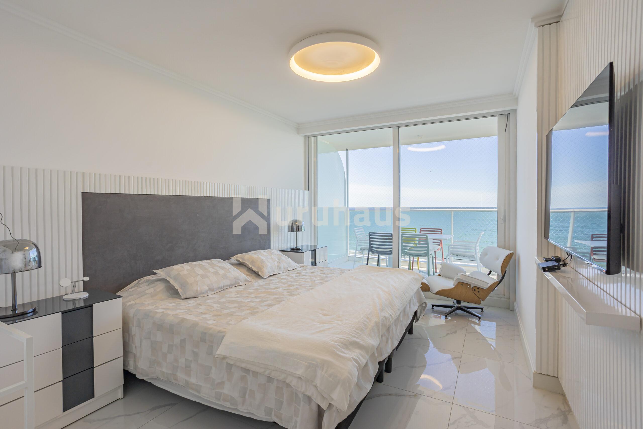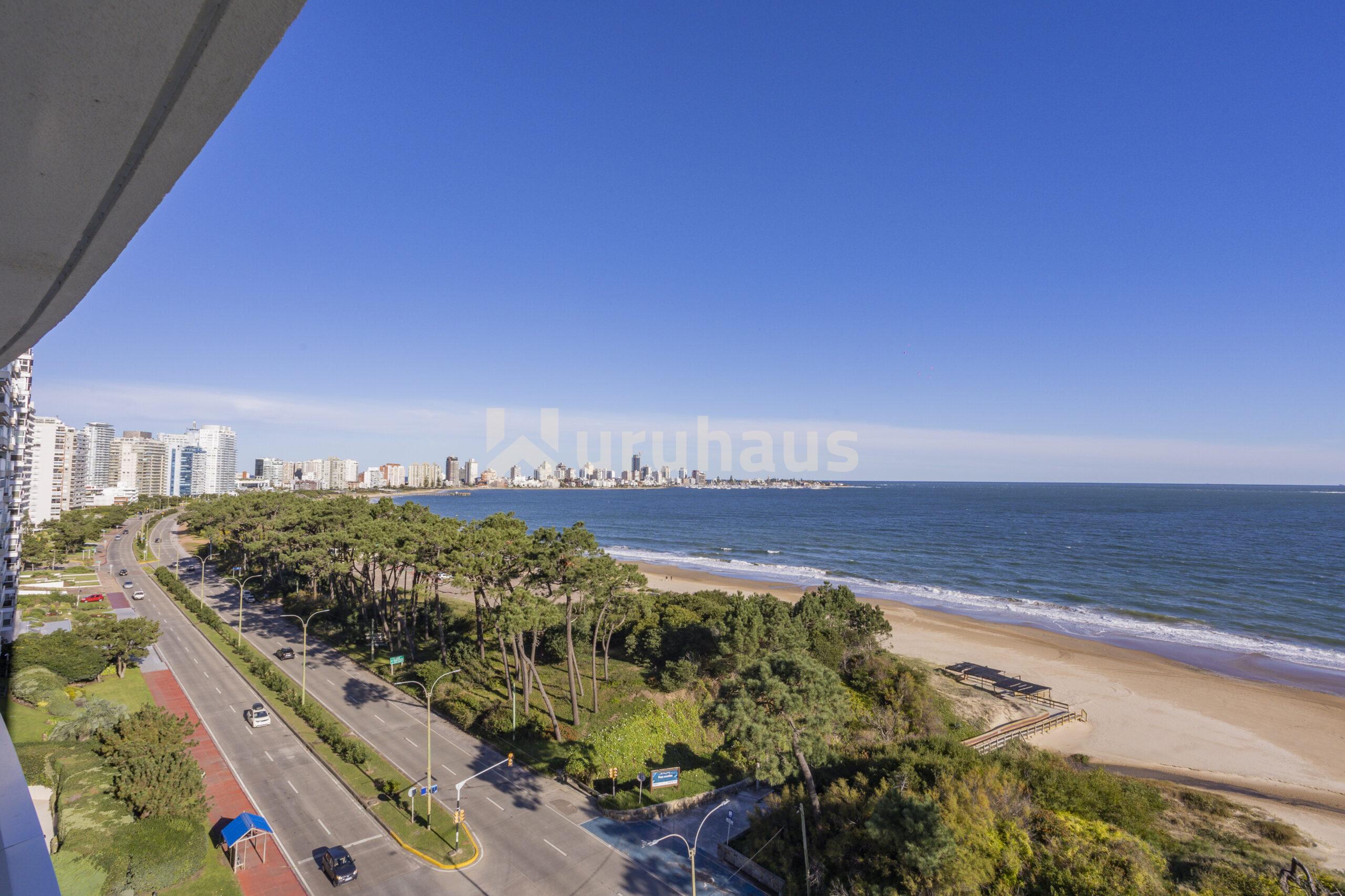 El amplio dormitorio principal se encuentra al frente, con vista directa al mar, baño completo y vestidor. Cocina definida, lavadero independiente y un luminoso living comedor con salida a una gran terraza desde donde se puede disfrutar de una panorámica única de la Playa Mansa.