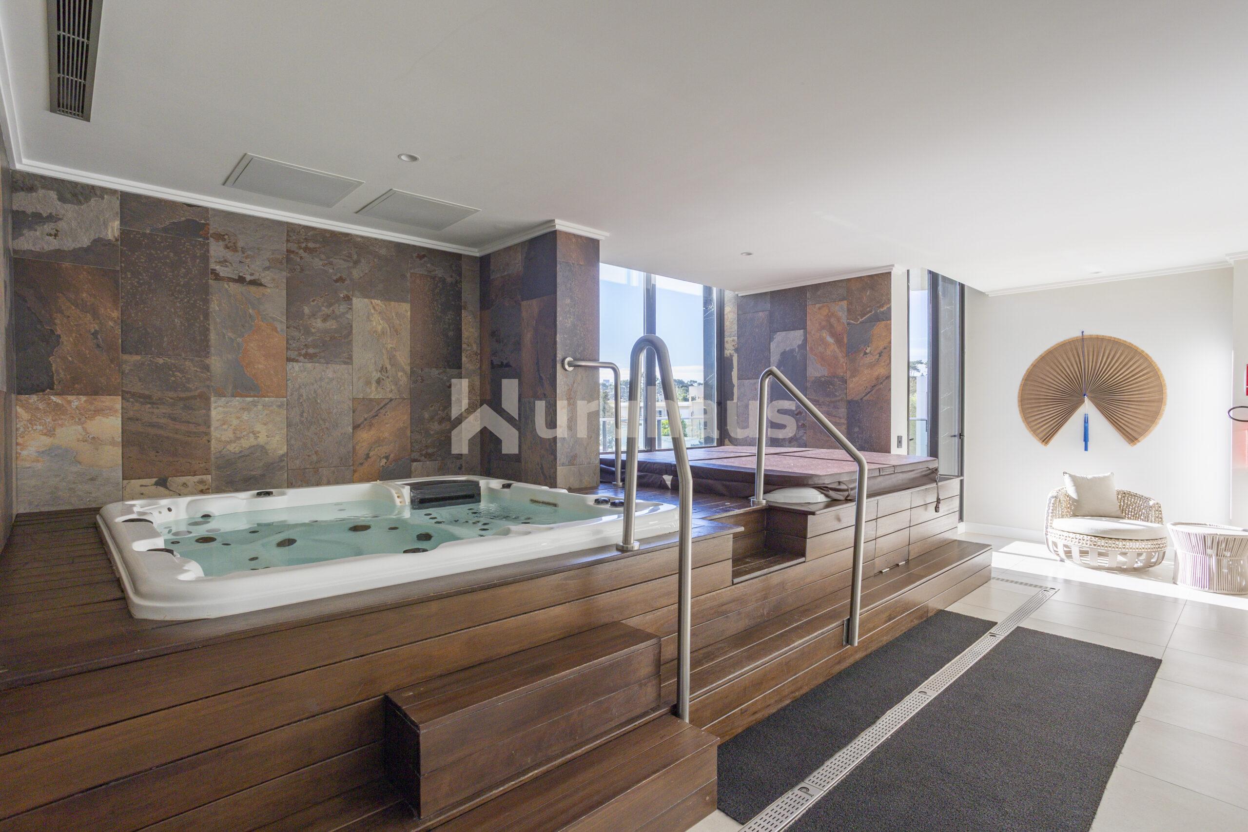 – Cuatro piletas climatizadas (dos interiores y dos exteriores) – Gimnasio de última generación con vista al mar – Seis barbacoas con ascensor – Dos saunas – Dos salas de masajes – Salas para adultos, adolescentes y niños – Cine 3D – S alón de fiestas con capacidad para 150 personas – Servicio de playa premium – Recepción y garajista 24hs, videovigilancia y accesos controlados por domótica – Estacionamiento de cortesÃa y cargador para autos eléctricos – Servicio de Limpieza –